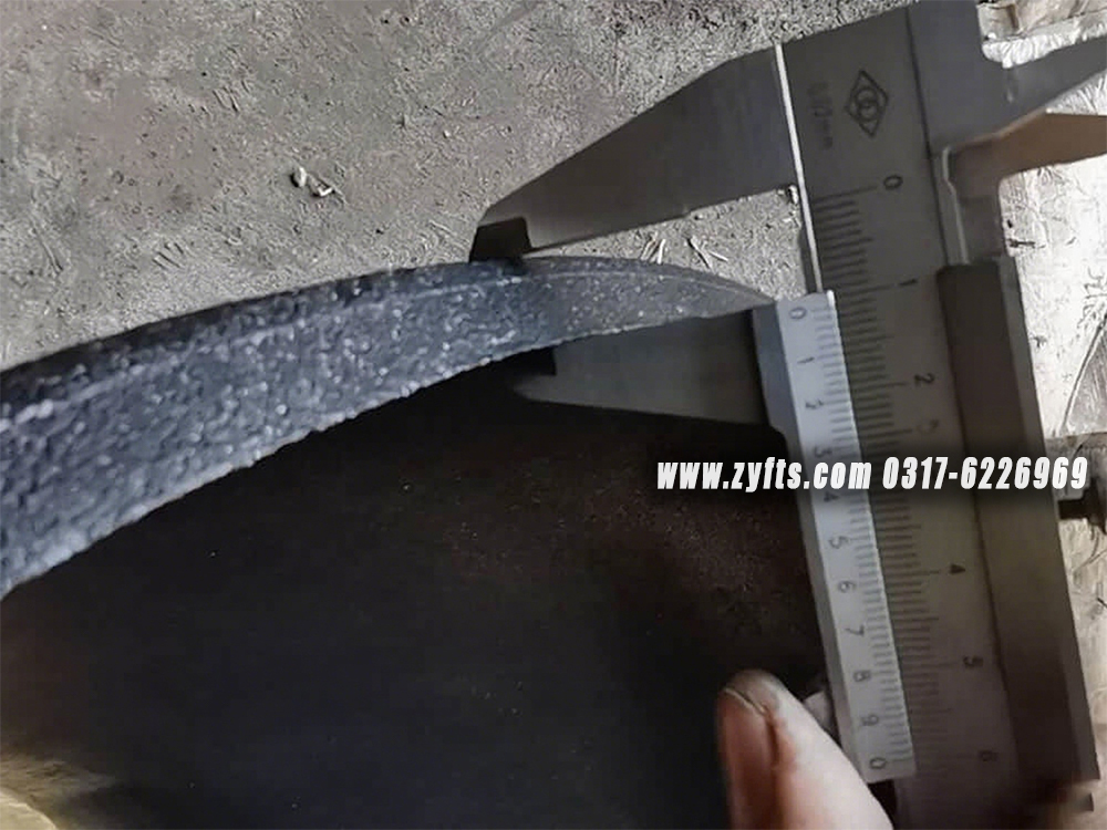 The weakest point on an elbow is the inside radius. ASME B16.9 only standardizes the center to face dimensions and some “squareness” dimensional tolerances. The wall thickness at the weld line location even is standardized, but not through the rest of an elbow. The standard states that the minimum tolerance will be within 12.5% of the minimum ordered wall thickness of the pipe. A maximum tolerance is specified only at the ends of the fitting. Many providers of butt weld elbows provide one schedule greater thickness so that sufficient wall thickness, after forming, remains.